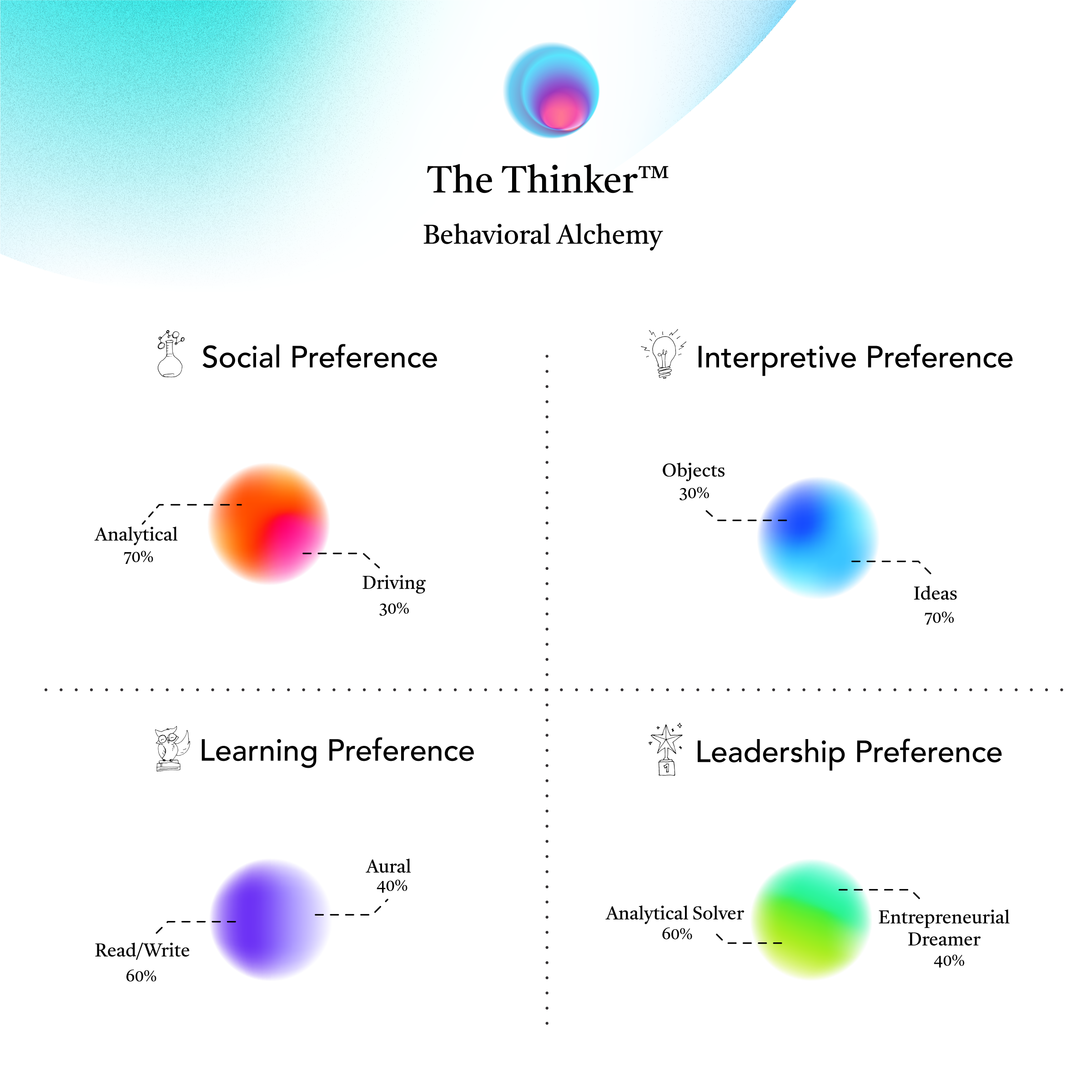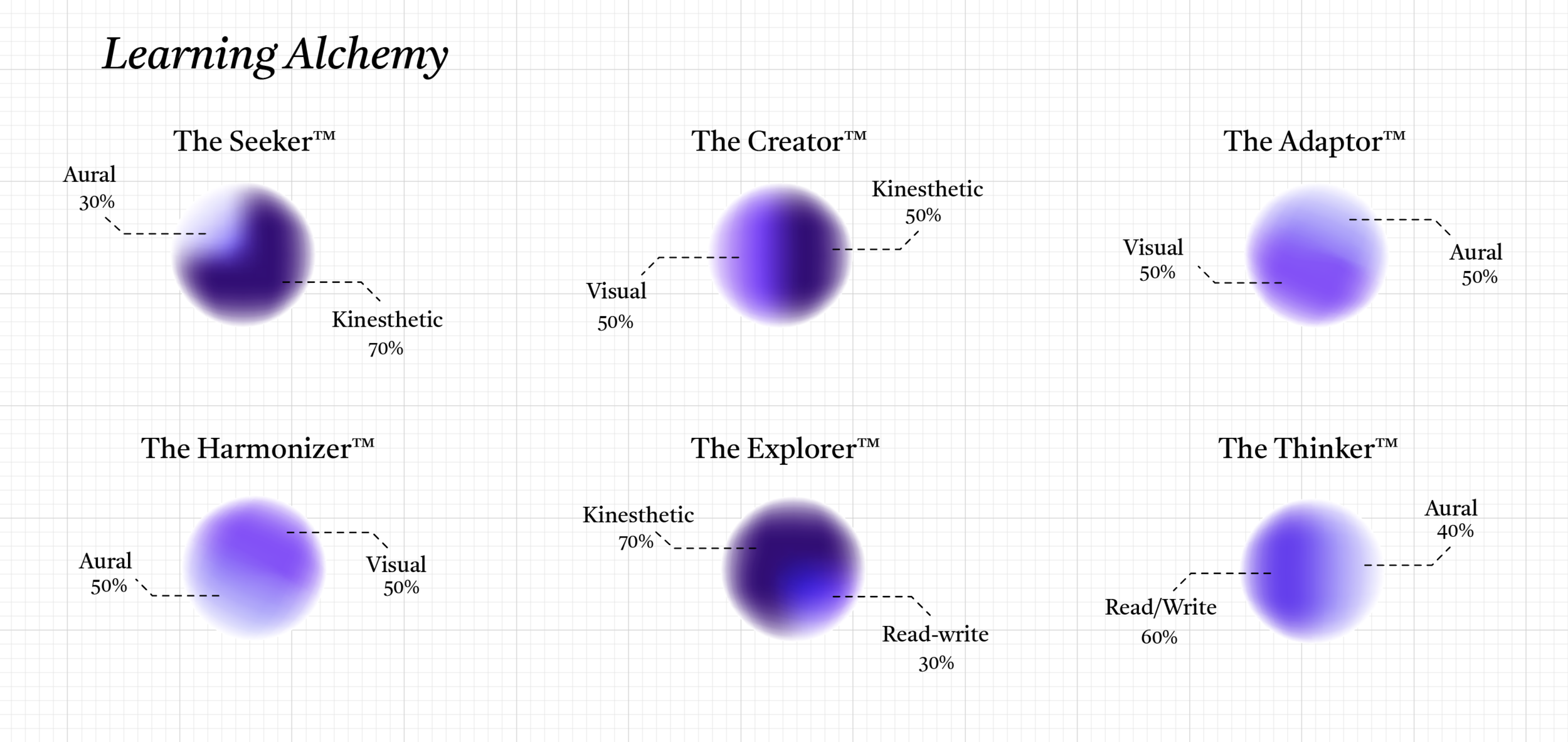 The result of the nuance intentionally built into the alchemy behind the profiles means that there are many, many, variations of the preferences that could be returned. So the six Experience Profiles - The Seeker, The Creator, The Adaptor, The Harmonizer, The Explorer and The Thinker - represent segments of the variations that group similarities in preference and behavior together. This is why it’s important to emphasize that the Experience Profiles(™) are not a fixed or definitive typing tool. They are a tool to prompt a sentient self awareness, reflection and activation by the attendee; and the offering of a diversity of preference pathways by the creators of inclusive experiences.